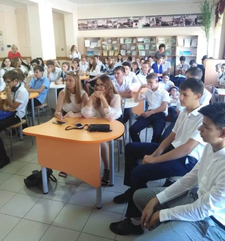В рамках Урока Победы в День знаний сотрудник Крыловской МБ И.Работа организовала и провела для читателей (учащиеся 11 – х классов МБОУ СОШ 2 классные руководители Борейко Г.В. и Шевлюга С.Б..) конкурсно - игровую программу «Стихи и песни тоже воевали»