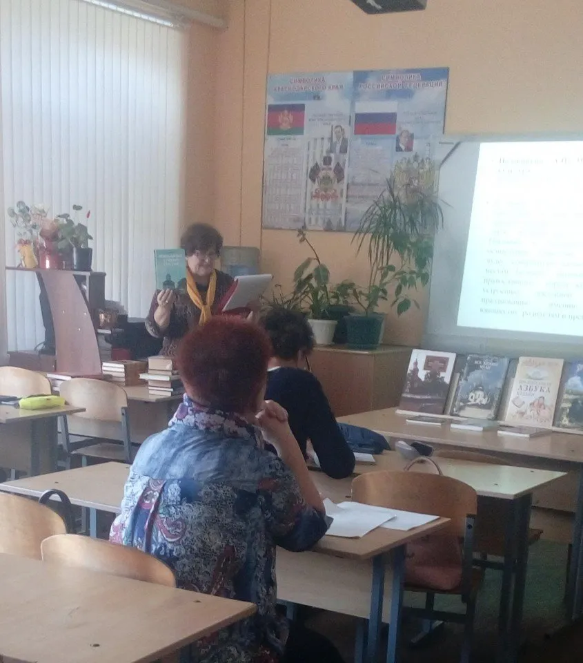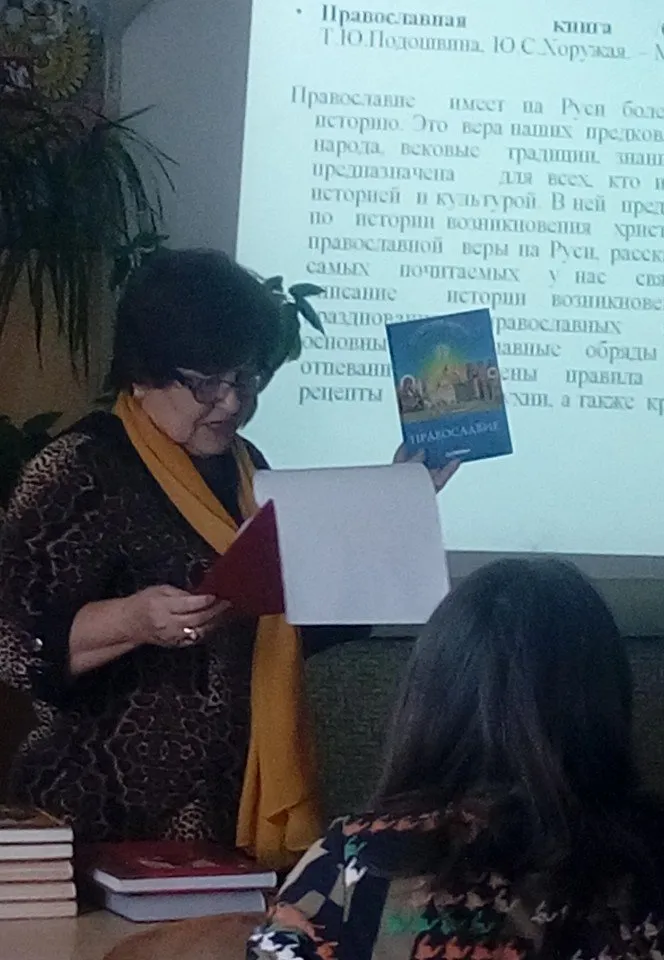 Сотрудники методико – библиографического отдела МКУК «Крыловская межпоселенческая библиотека» главный библиограф О.А. Литвинова и главный библиотекарь Т.А. Саенко приняли участие в семинаре преподавателей предмета «Основы православной культуры», состоявшегося в МБОУ СОШ №3 им. В. Ступака ст. Крыловской 1 ноября 2019 года. Библиограф сделала обзор книг православной тематики, имеющихся в книжном фонде библиотеки и познакомила участников семинара с мероприятиями по данному направлению, проводимыми межпоселенческой библиотекой совместно с Свято – Екатерининским храмом ст. Крыловской, Крыловским (Екатериновским) районным казачьим обществом, Советом Крыловской районной организации ветеранов (пенсионеров, инвалидов) войны, труда, вооруженных сил и правоохранительных органов и Отделом молодежной политики администрации МО Крыловский район.