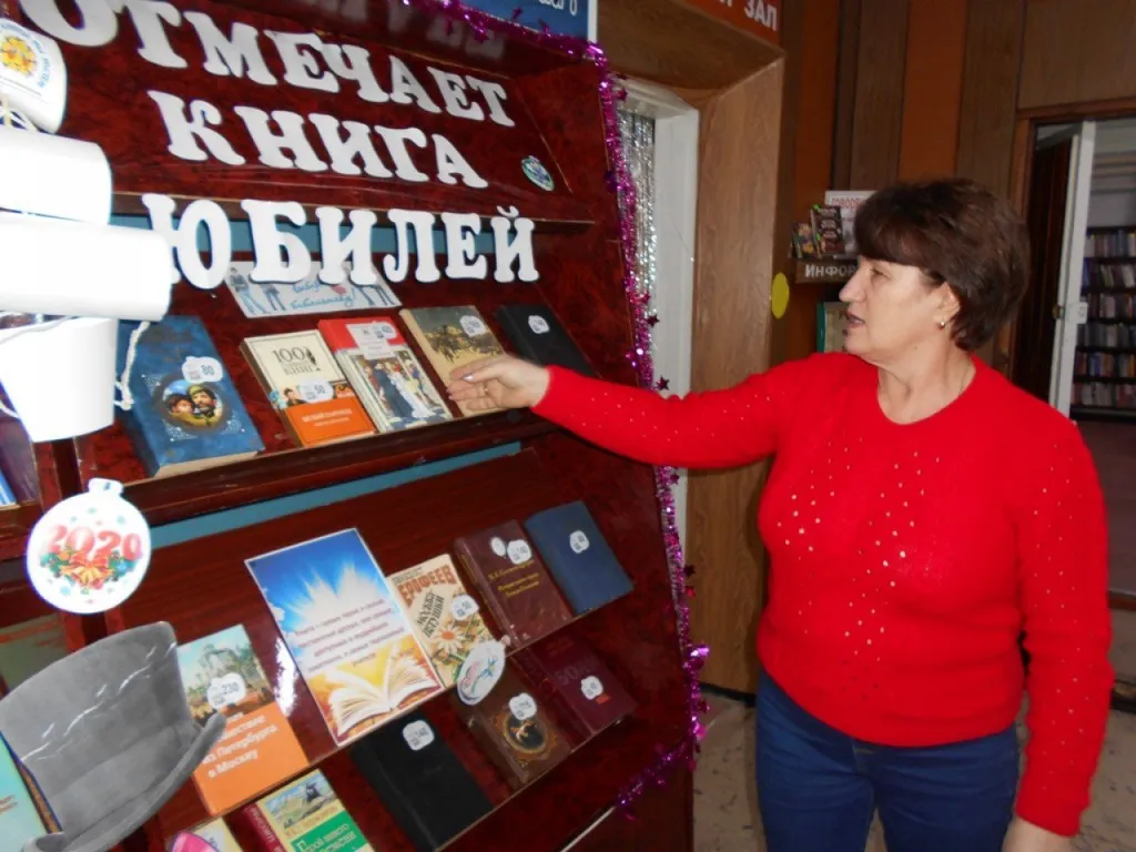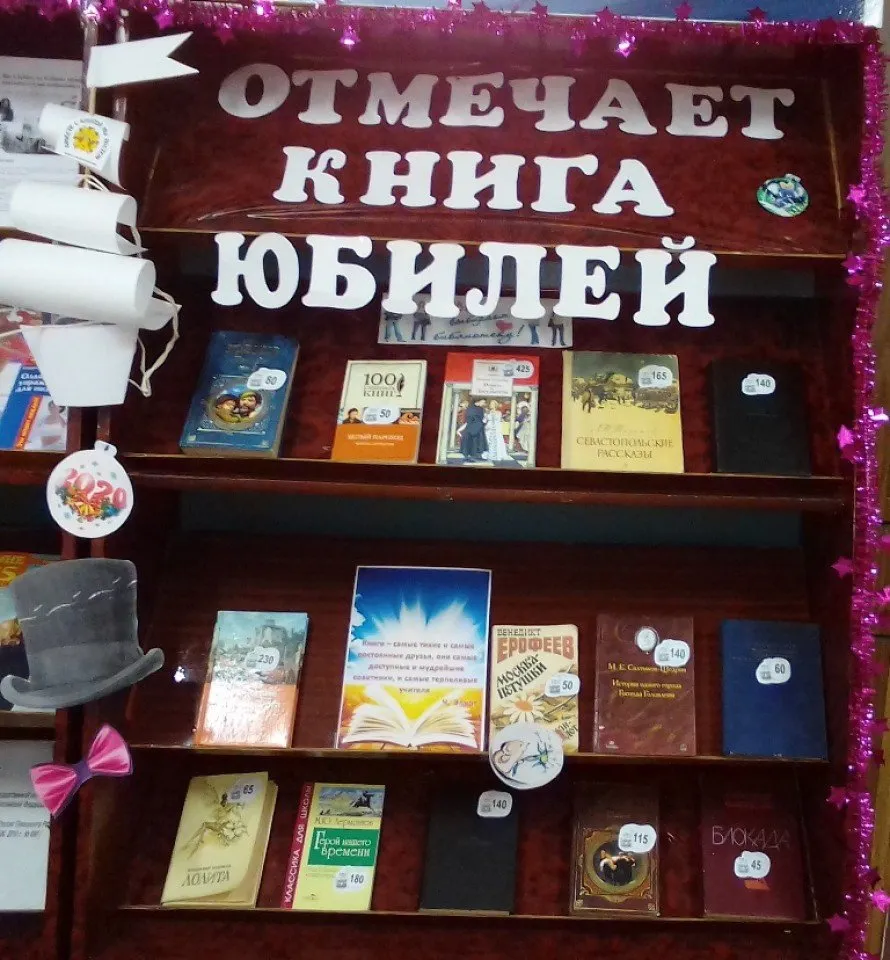 Далее библиотечный нон-стоп подхватила зав. отделом обслуживания читателей И.Работа. Она предложила читателям сделать подарок нашим книгам - юбилярам: прочитать как можно больше книг с выставки «Отмечает книга юбилей».