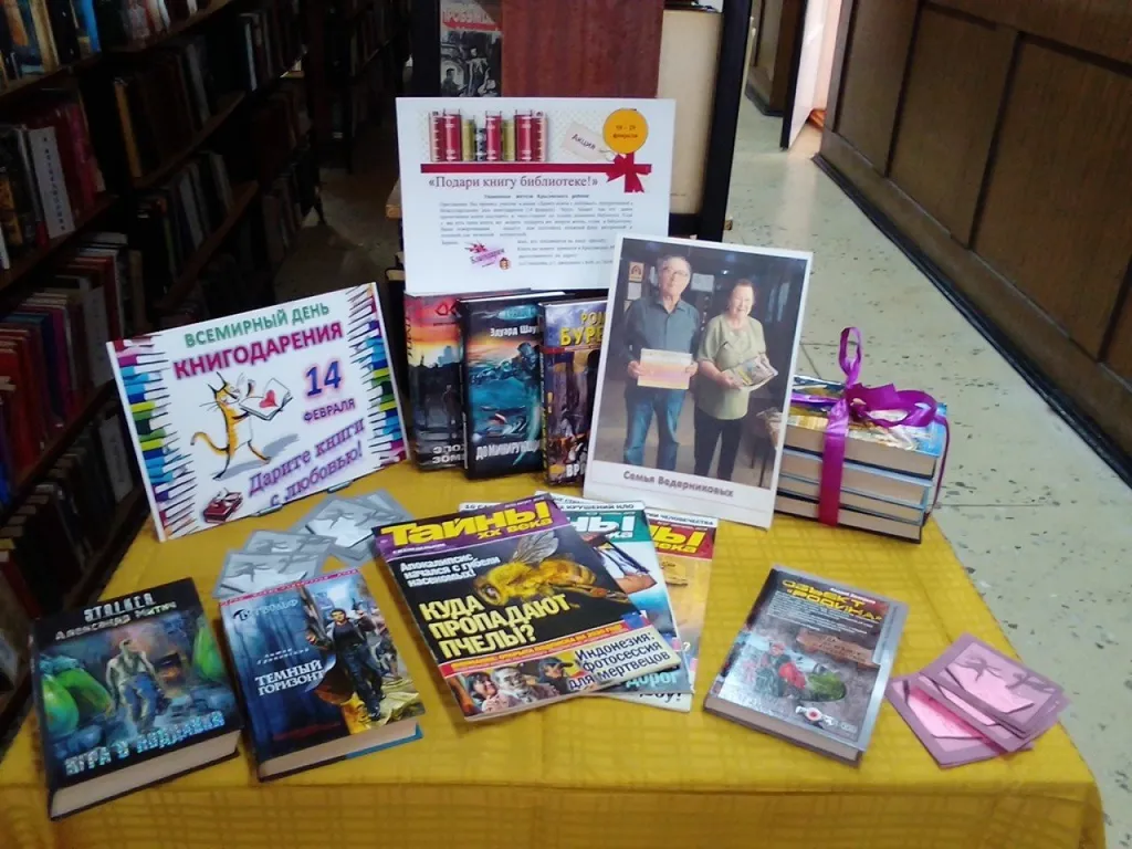 Библиотека благодарит всех тех, кто знает настоящую ценность бумажной книги и от всего сердца делает подарки для всех пользователей библиотеки: Гах И., Бондаренко В.И., Бовгарь И.Ю., супруги Ведерниковы, Полежайко В.П., Лашина Л.М., Терлыч Е., Охинько Л.И. и другие