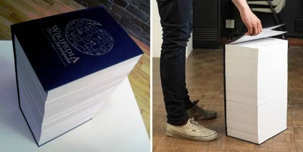 А вот самой большой книгой «для взрослых» является произведение датского издательства «Min A-Kasse», которая представляет собой практически полную версию всем известной Википедии. В 2009 году было решено собрать все самые популярные и избранные статьи электронного ресурса и перенести их на бумагу. В результате этого получилась книга высотой 0.5 метра, которая насчитывает более 5 000 страниц.