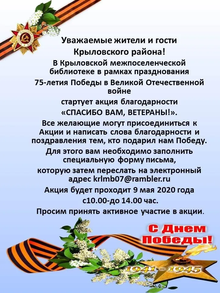 Все желающие могут присоединиться к Акции и написать слова благодарности и поздравления тем, кто подарил нам Победу.