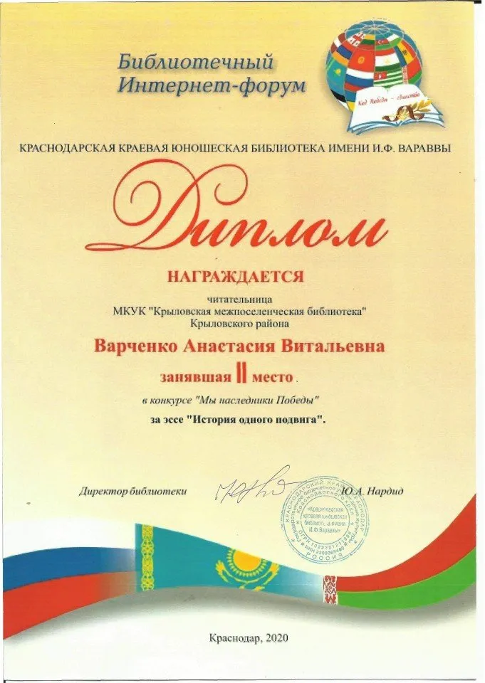 24 ноября состоялось заключительное онлайн-мероприятие по подведению итогов библиотечного Интернет-форума "Код Победы - единство," посвященного 75-летию Победы в Великой Отечественной войне.