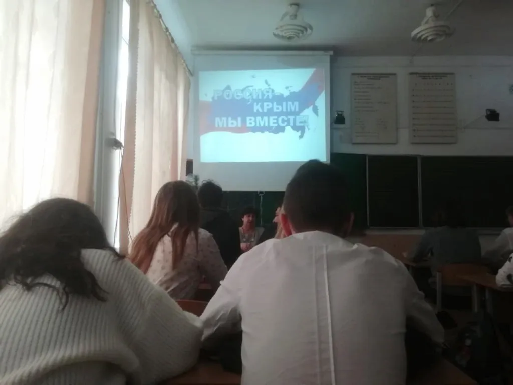 Ребятам были продемонстрированы видео - ролики «Крым и классики литературы», «Наш Крым». Так же учащиеся прослушали обращение президента России В. В. Путина 18 марта 2014 года к обеим палатам Федерального собрания Российской Федерации в связи с предложением Государственного Совета Республики Крым о принятии республики в состав Российской Федерации.