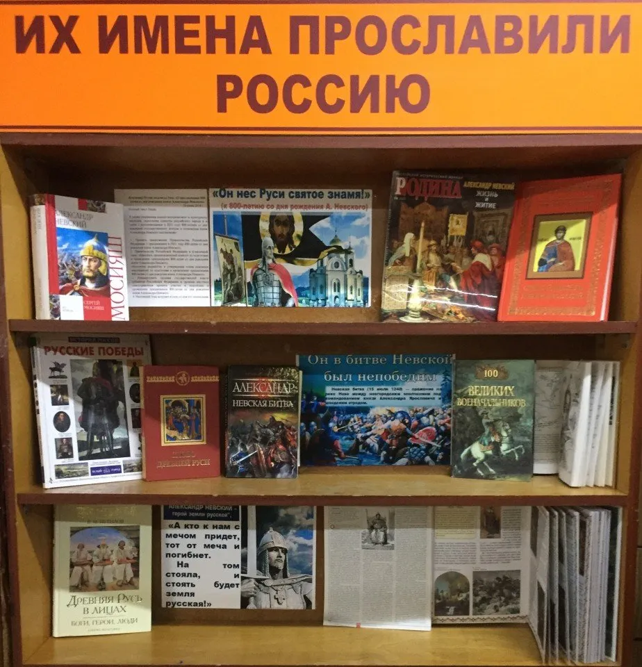 На абонементе МКУК «Крыловская МБ» была оформлена иллюстрированная книжная выставка: «Он нес Руси святое знамя», которая знакомит читателей не только с образом великого полководца, не проигравшего ни одного сражения, но и с удивительным человеком, обладавшим мудрым умом и смирением.