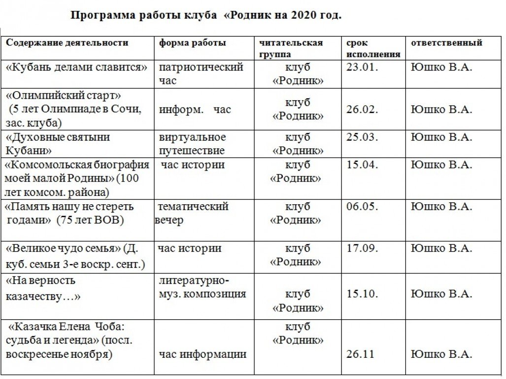 Планы клубов по интересам