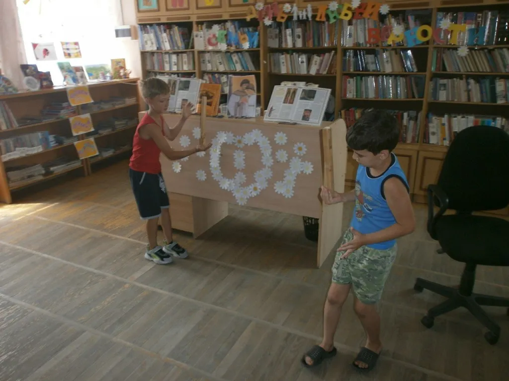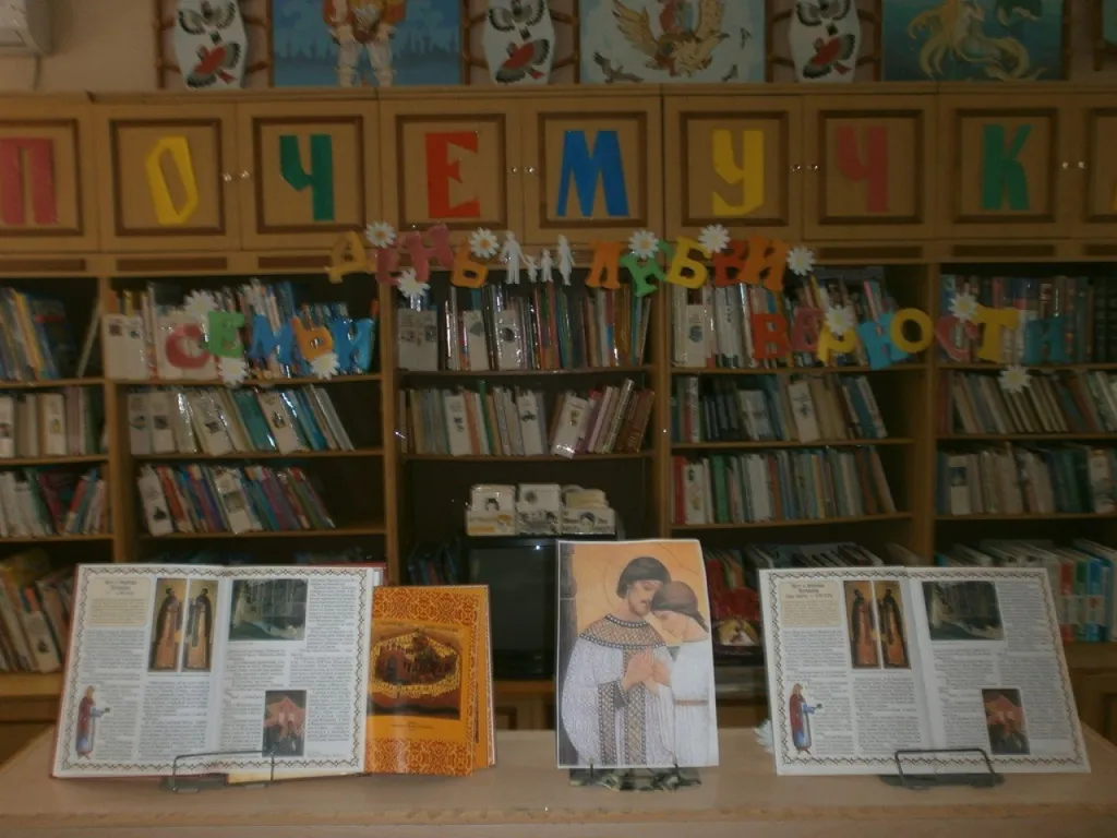 Под таким названием прошла празднично - конкурсная программа в Районной детской библиотеке, посвящённая русским благоверным святым Петре и Февронии и Дню Семьи, любви и верности. Ребята детской площадки СОШ №2 услышали из уст ведущей (Белокуровой С.Н.) легендарную историю любви и верности Петра и Февронии, и с удовольствием приняли участие в семейных конкурсах «Упакуй подарок», «Поиски пропажи», «Сестрица Алёнушка», «Малечина – палечина», «Приз на ощупь». Придумали и изобразили панно «Ромашковое сердечко», приняли участие в фотосессии «Белолицые ромашки», а также вспоминали членов своих семей хором, и важные семейные качества - досказывая словечки в стихотворном конкурсе «Моя семья». И даже, если, дети ещё не точно формулировали некоторые известные пословицы, но суть их выражали другими словами, не менее важными для характеристики семейных отношений, как же не согласится с детской мудростью, что «с милым рай и в «феврале».