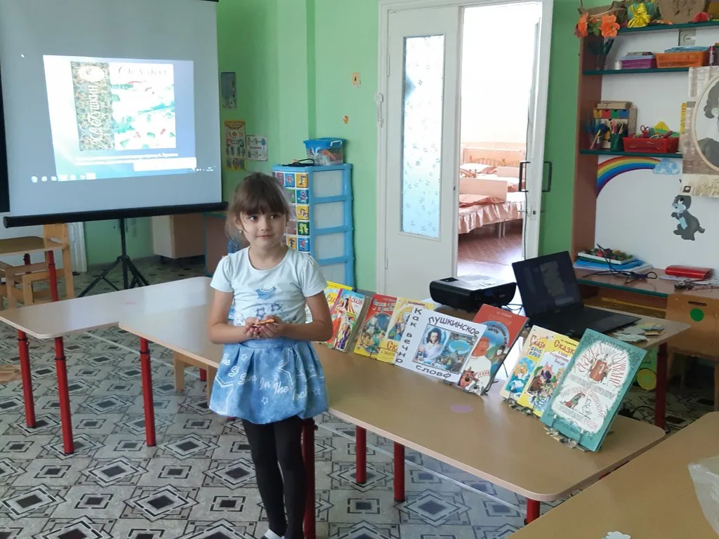 Конкурсная программа по сказкам А. Пушкина «Сказочное Лукоморье» прошла в детском саду №5 «Светлячок», в старшей группе. Воспитатели читали дошколятам прекрасные сказки в течение двух недель. А закрепить знания у ребят, полученные в результате чтения сказок, пригласили библиотекаря Районной детской библиотеки (С.Н. Белокурову). Библиотекарь провела с ребятами видеовикторину «У Лукоморья» и конкурс «Вопрос – Ответ» или «Золотая рыбка», в котором ребята «поймав золотую рыбку», отвечали на вопрос. Как и полагается, после литературной викторины были подведены итоги. Главные победители были награждены «скрепышами», все остальные – сладкими конфетами. Все участники литературной программы имели возможность посмотреть книги со сказками Александра Сергеевича с красивыми иллюстрациями (принесёнными из Районной детской библиотеки) и сфотографироваться возле них.
