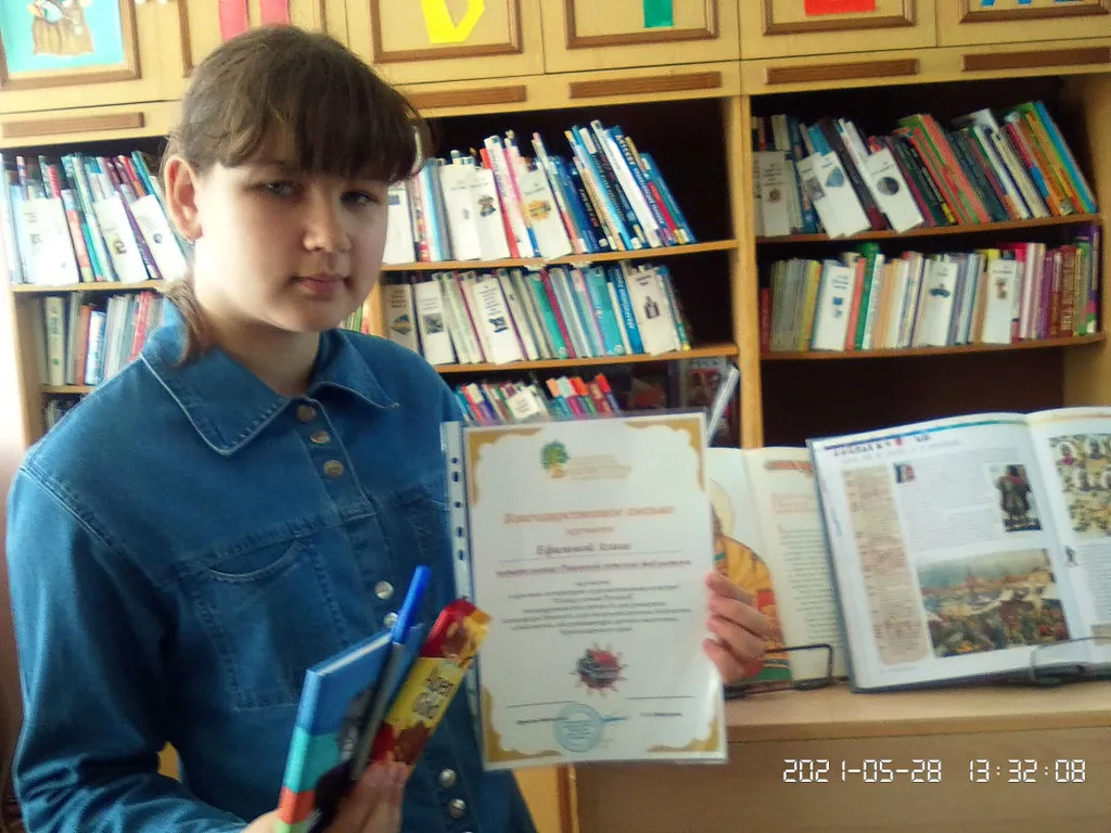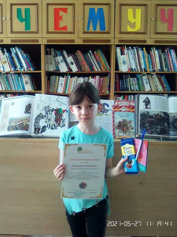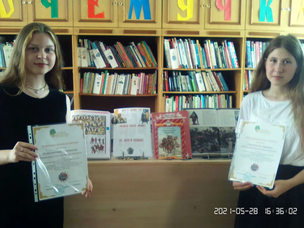 За участие в литературно – художественном конкурсе «Солнце земли Русской», посвящённого 800 – летию со дня рождения Александра Невского, проводимого Краснодарской краевой детской библиотекой имени братьев Игнатовых, читательницы Районной детской библиотеки: Ординарцева Виктория, Ефимова Алина, Ипполитова Анастасия и Стражевская Вероника были награждены благодарственными письмами от библиотеки – организатора конкурса и подарками от любимой детской библиотеки.